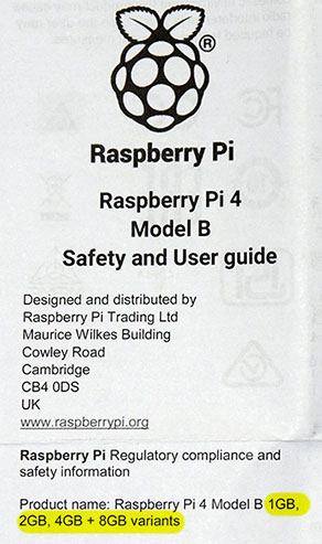 Mais nos confrères du site Hackaday se sont d’ores et déjà procurés la bête et ils ont découvert quelque chose d’assez surprenant. En effet, ils ont remarqué que la notice du Raspberry Pi 4 faisait mention non pas à trois déclinaisons de la carte (1, 2 et 4 Go) mais à quatre déclinaisons : 1 Go, 2 Go, 4 Go et même 8 Go !