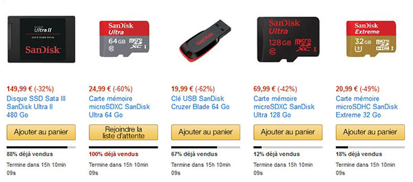 Ventes flash : grosse opération sur le stockage chez Amazon.fr !
