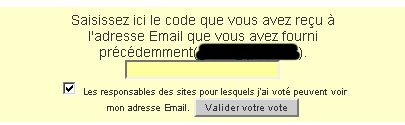 – vous allez recevoir aussitôt par mail un code d’activation. Entrez le sur la page suivante afin de valider et confirmer votre vote :