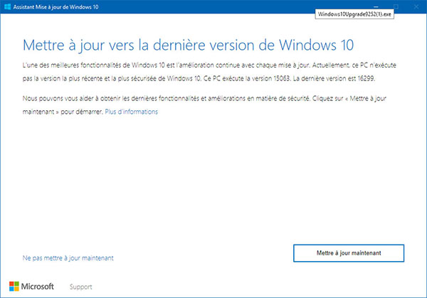 – soit en cliquant sur « Mettre à jour maintenant » en passant par ce lien.