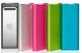 – l’iPod Shuttle évolue légèrement. Pas de quoi fouetter un chat puisque les changements concernent exclusivement les coloris du baladeur que vous pourrez désormais retrouver en cinq nouveaux coloris : argent, rose, vert, bleu et noir. Pour le prix, comptez 59€ pour le Shuttle de 2Go et 79€ pour le modèle de 4Go.