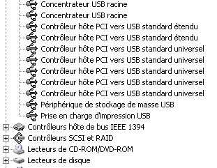 Une petite vérification dans le Gestionnaire de Périphériques permet de découvrir qu’un nouveau composant a été ajouté dans la rubrique « Contrôleurs de bus usb ». Ce nouveau composant, qui n’est autre que notre fameux câble usb, se somme : « Prise en charge d’impression usb ».