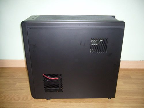 Comme vous pouvez le voir ci-dessous sur la photo du coté latérale gauche, le boitier dispose de deux emplacements pour la ventilation. L’emplacement du haut peut accueillir des ventilateurs de 140 mm à 80 mm et celui du bas des ventilos de 140 mm à 120 mm.