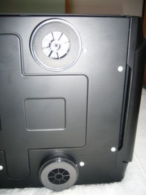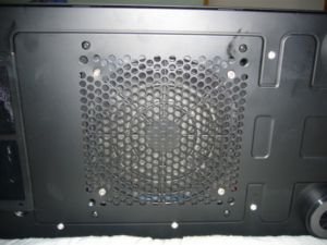 On regrettera que ces deux emplacements destinés à faire entrer l’air dans le boitier ne soient pas munis de filtres à poussières, ce qui est très dommage car une grande partie de la poussière entre ici pour aller se coller dans le ventilateur de la cartes graphiques ou encore dans le ventirad du processeur, obligeant ainsi à devoir nettoyer l’intérieur du pc plus souvent.