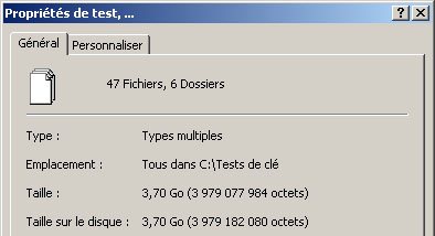Pour évaluer les performances de la RALLY 2 Turbo en condition réelle d’utilisation, j’ai également utilisé la clé usb de manière plus classique en copiant et transférant des données : dans un premier temps du disque vers la clé usb ; puis de la clé usb vers le disque dur. Ces données se présentaient sous la forme de 47 fichiers et de 6 six dossiers ; le tout représentant un total de 3,70Go de données.