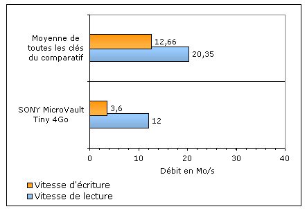 En vitesse de lecture, avec seulement 12Mo/s relevés sous HD Tach, la MicroVault Tiny joue dans la même cour que la Kingston Data Traveler 100 et la PNY Attaché CapLess.