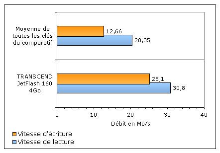 Sur le graphique ci-dessous, les débits (HD Tach) obtenus par le JetFlash 160 sont comparés à la moyenne des clés usb de ce comparatif :