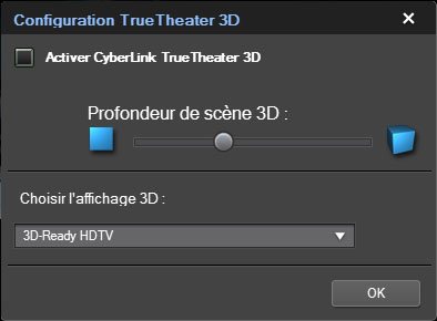 De même, grâce au procédé TrueTheater 3D, le logiciel vous permet de définir une profondeur de champs et de visualiser en temps réel vos DVD et vidéos SD. On manquera par contre la même fonctionnalité sur les Blu-ray actuels ainsi que les vidéos personnelles HD, certainement dû au manque de puissance (CPU/GPU) afin de réaliser cette fonction (rappelez vous, une image Full HD est 6 fois plus grande qu’en SD). Mais on peut certainement penser que dès que les GPU gagneront un peu plus de puissance (et à la vitesse où ça va, ça devrait pas prendre trop de temps), ce petit joujou pourra nous le faire :o). On espère voir le support de HDMI 1.4 très vite aussi.