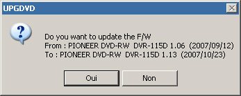 Comme indiqué en introduction, notre modèle de test est le DVR-115DBK. Sachez que ce même modèle est décliné chez Pioneer en plusieurs versions suivant qu’il exploite une interface IDE/ATAPI ou SATA, qu’il intègre ou non le support du DVD-RAM, et qu’il soit de couleur beige, noire ou même silver. Explications : DVD-115D : graveur DVD 20x IDE/ATAPI DVD-215D : graveur DVD 20x SATA DVD-215 : graveur DVD 20x SATA + écriture des DVD-RAM en 12x Dans tous les cas, outre l’interface et le support ou non du DVD-RAM qui changent, sachez que ces différents modèles sont identiques. D’ailleurs, ils sont tous reconnus par Windows et les logiciels de gravure comme étant des DVR-115D. Firmware Notre Pioneer DVR-115DBK était équipé d’origine du firmware 1.06. Afin de l’utiliser dans les meilleurs conditions possibles, nous l’avons mis à jour vers la dernière version disponible ( 1.13) au moment de notre test. (*)