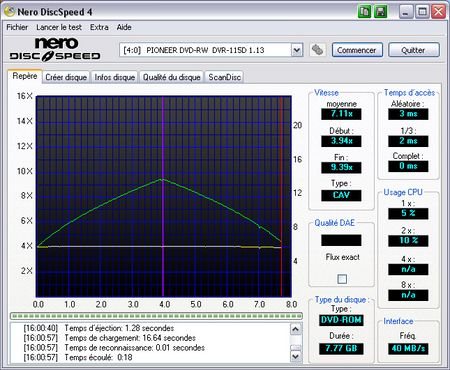 Tests de DVD pressés Comme d’habitude, nous avons utilisé pour ce test les DVD vidéos suivants : – DVD simple couche (4,14Go) : « La fiancée de Chucky » Lecture d’un DVD-Vidéo (DVD5)