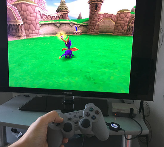 Grâce à mon vieil accessoire de 9 ans d’âge qui traînait au fin fond d’une boîte remplie de câbles et de connectique divers, j’ai donc la possibilité d’utiliser la recalbox avec une vraie manette Playstation. Les vibrations ne semblent pas supportés mais quel plaisir de rejouer à des jeux PSX avec la manette d’origine !