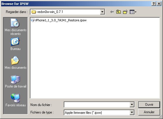 – Cliquez sur Browse (parcourir) et spécifiez le chemin du firmware 3.0 de votre iPhone.