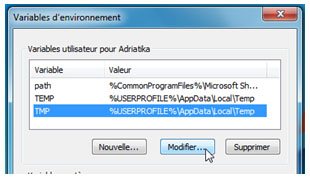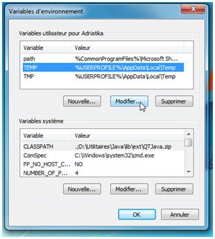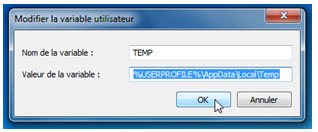 Petite remarque, sous Vista et Seven, si on déplace les dossiers « temporaires » utilisateurs et système, il faut le faire dans 2 dossiers distincts. Il faut également lancer les commandes