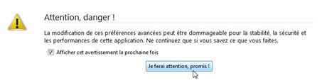 Tapez maintenant : about :config dans la barre d’adresse et validez par la touche « Entrée » :