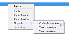 Une impressionnante liste apparait. Faites un clic droit et sélectionnez : Nouvelle Chaîne de caractères :