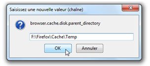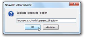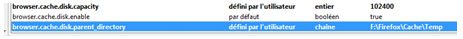 Dans la fenêtre qui s’ouvre, copiez ou tapez : brower.cache.disk.parent_directory
