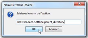Vous pouvez répéter la manœuvre si vous utilisez la fonction de visualisation de sites hors connexion , en inscrivant cette fois le code : browser.cache.offline.parent_directory