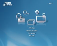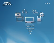 Destiné avant tout aux PC média center et donc à être utilisé sur un écran de TV, Nero Home permet d’accéder au contenu multimédia de votre machine via une interface graphique on ne peut plus simple et dépouillé mais qui a le mérite d’être très intuitive. Au menu : accès aux photos, vidéos, musiques, aux périphériques multimédias, etc.. Nero Media Home permet de partager ce même contenu à travers votre réseau local ; histoire de visionner par exemple les photos de vacances de votre PC de bureau sur la TV ou sur le PC portable à l’autre bout de la maison.