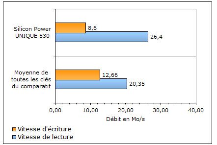 La clé Silicon Power UNIQUE 530 est une clé usb dont les performances se situent à peu près dans la moyenne. Certes il existe plus rapide mais le principal intérêt de cette clé réside dans sa petite taille, son tarif abordable et sa résistance.