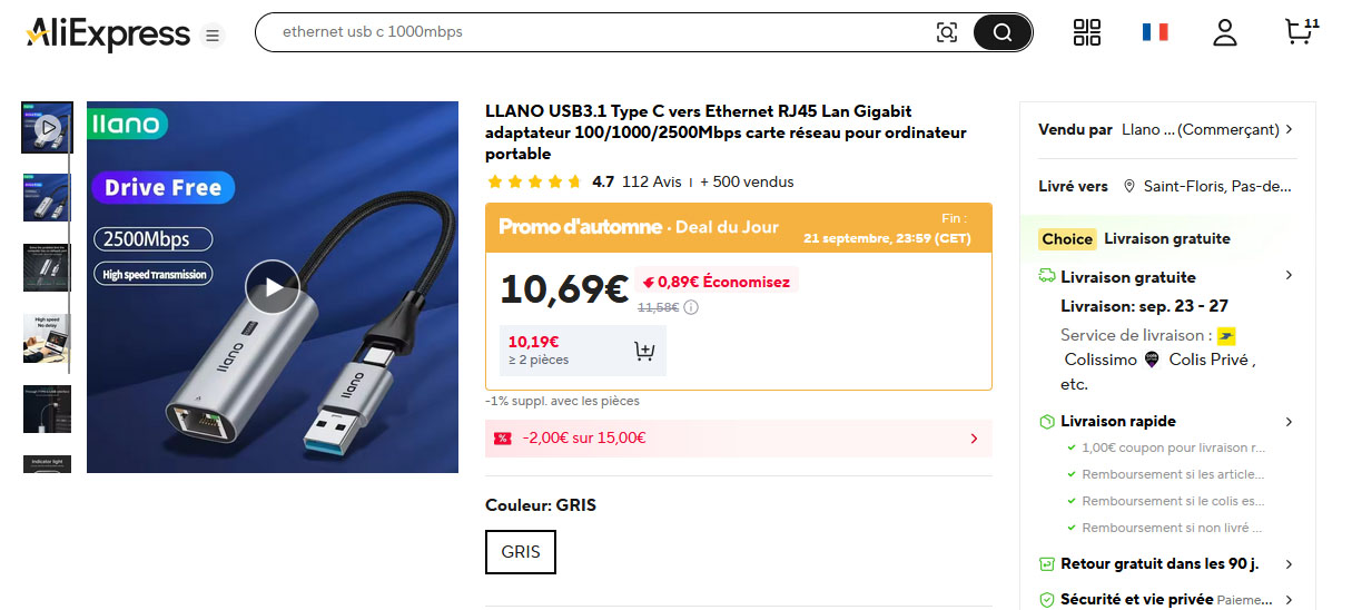 Personnnement j’ai dégoté un autre adaptateur, le LLANO 100/1000/2500 Mbps (RTL8156B) pour une dizaine d’euros sur Aliexpress. Il est équipé d’un contrôleur Realtek RTL8156B et fonctionne très bien sur mon NAS depuis plus de deux mois.