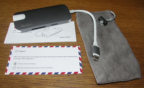 Néanmoins, le GN30H souffre tout de même de quelques défauts. Le câble USB C qui permet de relier l’adaptateur au PC est par exemple très court (6 centimètres seulement) ce qui tout de même un peu juste. A noter qu’il ne peut pas être enlevé car il est serti directement au boîtier. Un autre souci que j’ai également rencontré c’est la difficulté à insérer une carte microSD dans son slot. Il m’a fallu m’y prendre à plusieurs reprises pour y parvenir. L’utilisation d’une pointe de crayon permet heureusement de faciliter l’insertion et l’éjection de la carte. Autre point négatif et non des moindres, le GN30H coûte assez cher. Il faut en effet débourser la coquette somme de 59,99€ sur Amazon.fr pour se procurer cet adaptateur.