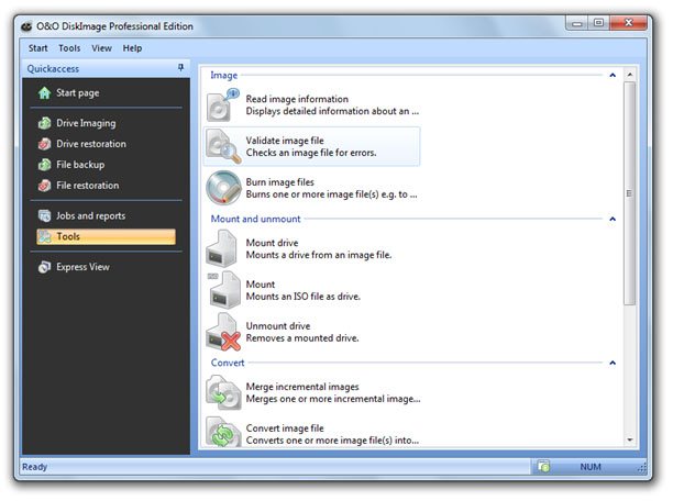 Voici maintenant un aperçu des outils qu’offre DiskImage :