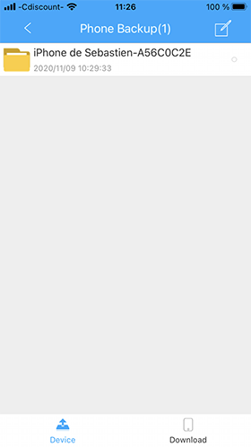 Comme on peut le voir ci-dessous, les données sont sauvegardées et parfaitement organisées sur le Backuper. L’application crée automatiquement des dossiers et sous dossiers pour facilement s’y retrouver. Cela vous permet d’identifier facilement votre appareil et de sauvegarder éventuellement plusieurs terminaux Android ou iOS sur le même Backuper. Pratique pour sauvegarder les donnes de toute la famille sur le même système de sauvegarde.