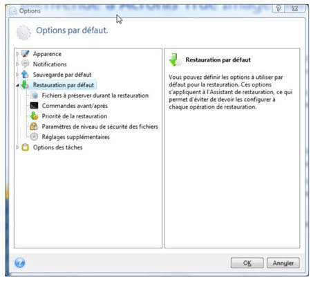 – Restauration par défaut : Une option nouvelle intéressante est la possibilité de préserver certains dossiers ou fichiers sur la partition d’origine.