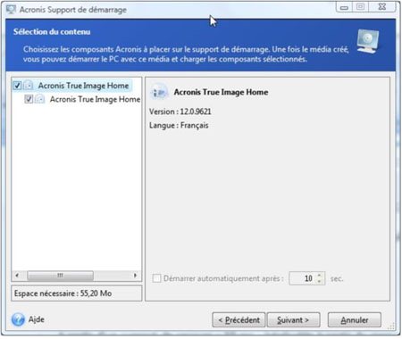 – A partir de ce qui se nomme maintenant le Startup Recovery Manager (accès par la touche F11 au démarrage de l’ordinateur). Attention, avec cette option, True-Image écrit son propre secteur de démarrage dans la MBR. Les problèmes parfois rencontrés avec la version 10 semblent cependant parfaitement corrigés et la stabilité est exemplaire.
