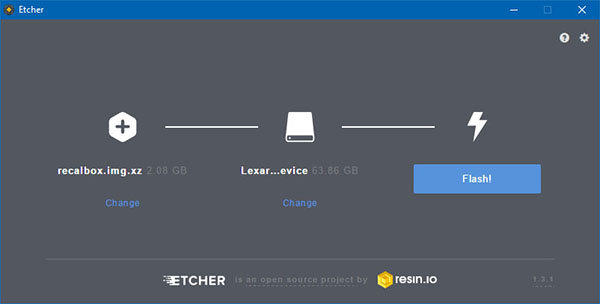 Quand Etcher est installé sur votre PC, il suffit de sélectionner l’image de Recabox OS et de cliquer sur le bouton « Flash » pour que le processus se lance.
