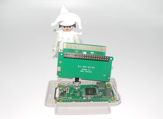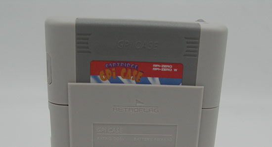 En effet, il suffit simplement d’extraire la partie arrière du GPI Case au niveau de la (fausse) cartouche de jeu. Et c’est ici à l’intérieur de ce bloc cartouche (plus large qu’une cartouche Game Goy habituelle) que le Pi Zero vient prendre place.