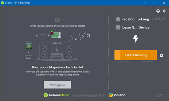 Quand Etcher est installé sur votre PC, il suffit de sélectionner l’image de Recalbox et de cliquer sur le bouton “Flash” pour que le processus se lance et c’est parti !