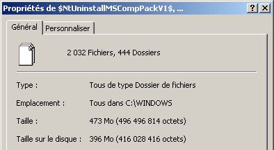 A chaque mise de Windows XP par le biais de WindowsUpdate ou de la procédure de mises à jours automatiques, des fichiers temporaires d’installation sont conservés par XP. Il se trouvent dans C:\Windows et sont facilement reconnaissables au nom qu’ils portent. Tous les dossiers commençant par $NtUinstall sont des fichiers temporaires.
